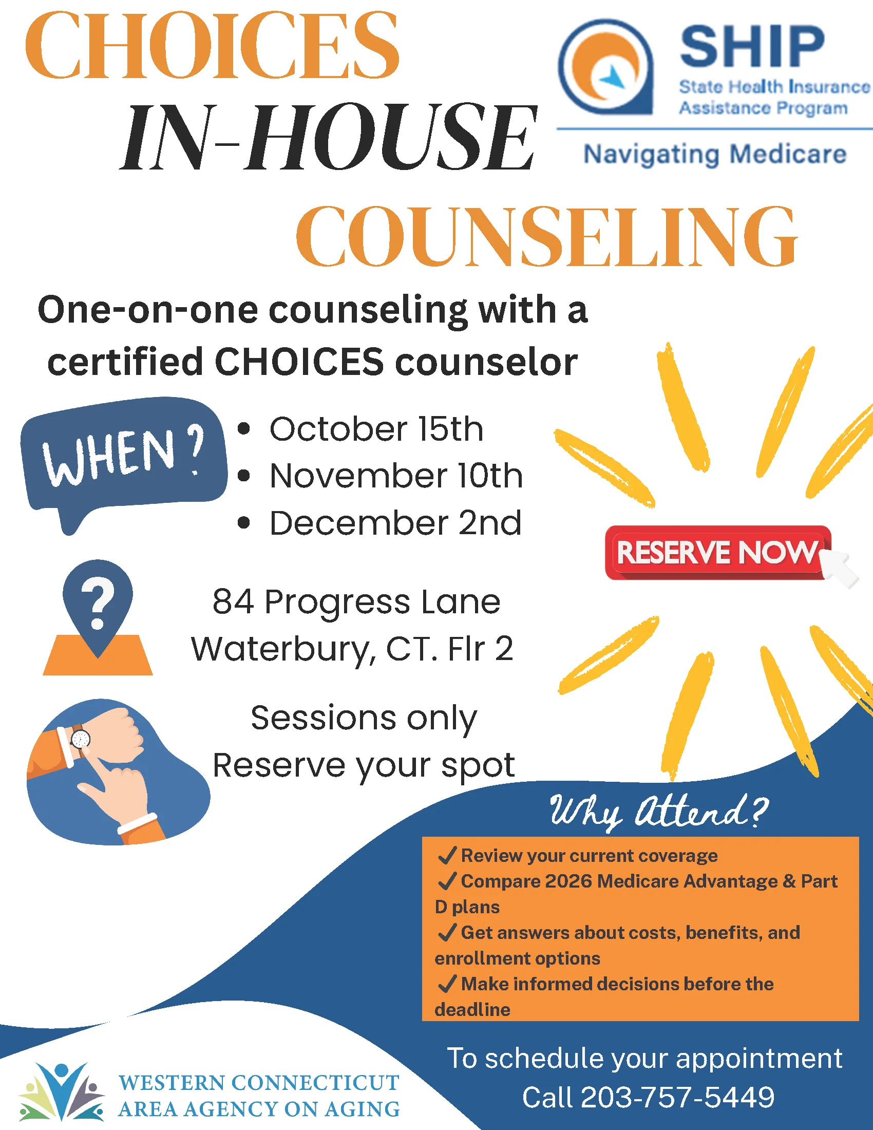 We’re offering one-on-one sessions with a certified CHOICES counselor—completely free and in person.