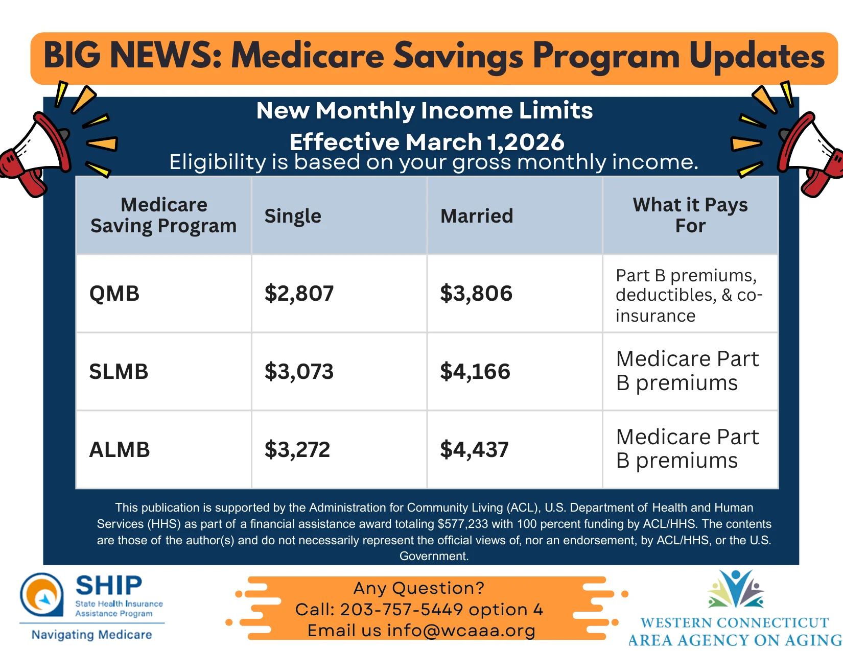 New income limits for the Medicare Savings Programs took effect March 1, 2026. These programs may help eligible Medicare beneficiaries pay for Medicare Part B premiums, deductibles, and other costs.