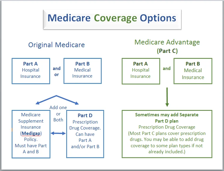 Part C or Medicare Advantage (MA) plans are health plan options that are part of the Medicare program. If you join one of these plans, you generally get all your Medicare-covered health care through that plan which can include prescription drug coverage. Medicare Advantage plans include: Health Maintenance Organization (HMOs), Preferred Provider Organizations (PPO), Private fee-for-service plans and special needs plans.